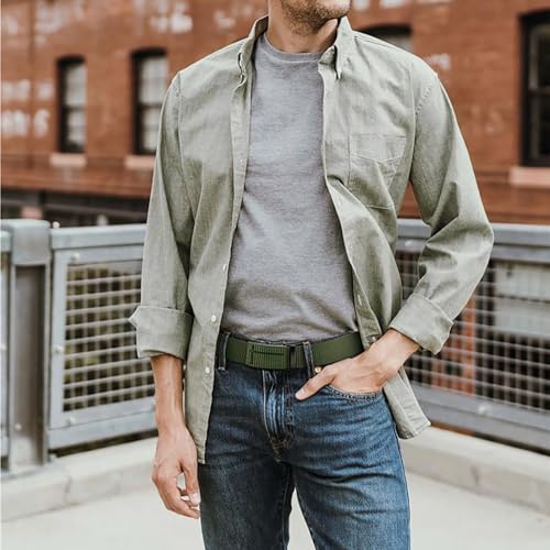 • LIGHT WEIGHT&BUILT:Canvas belt for men can keep a light weight, Our smooth alloy buckle is plated thickly protection materials, which make the buckle be more solid and nonperishable. The head and tail of the belt is well wrapped by carefully selected="" leather, which can improve its abrasion resistance,solid nylon fabric strap straightforward to clean,it is a solid belt for your to go through any rough occasions.