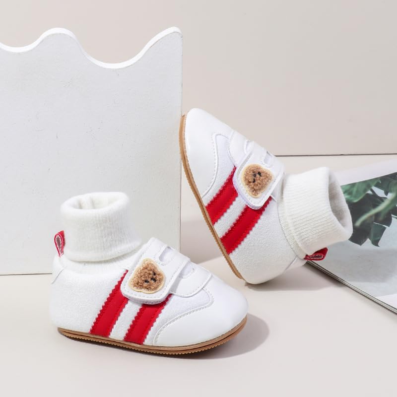• Anti slip: The combination of textile stripes and Eva anti slip particles increases the friction of the sole, providing double protection for the baby