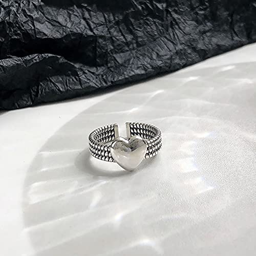 Vintage Layered Loving Heart Statement Ring for Women Silvery Expandable Adjustable Open Wrap Twisted Finger Rings Comfort Fit Retro Promise Engagement Wedding Eternity Jewelry Gift 5