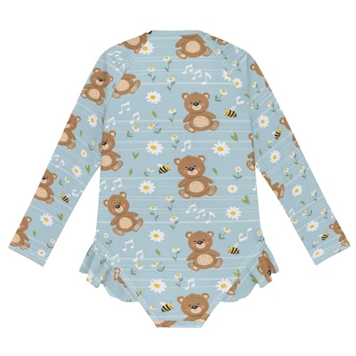 Cute Bears Daisy Music Notes Girls Long Sleeve Swimsuit Rash Guard One Piece Bathing Suits Zipper 3-12T 7