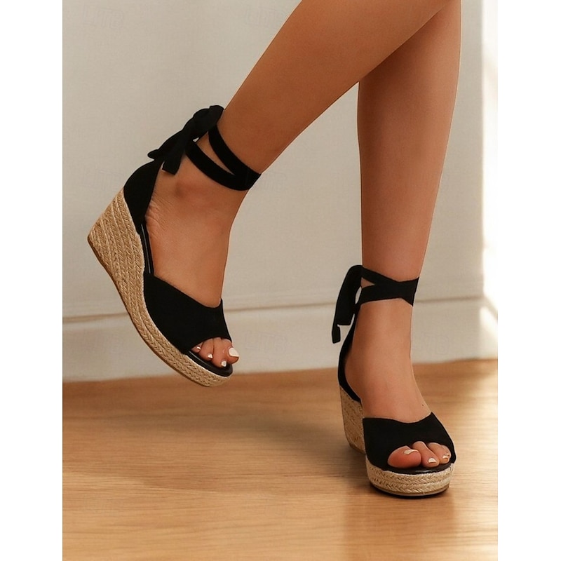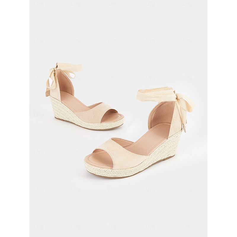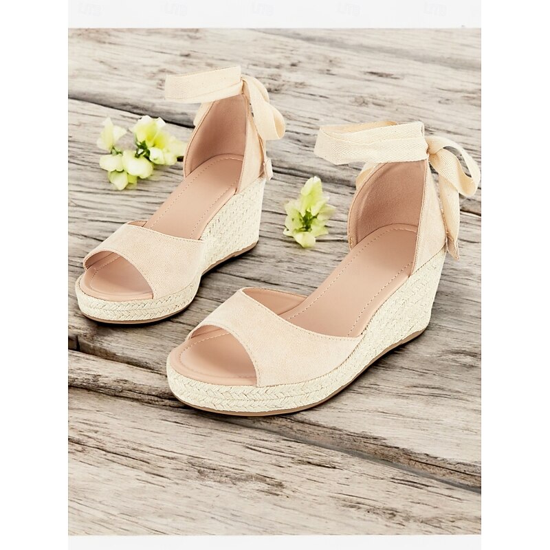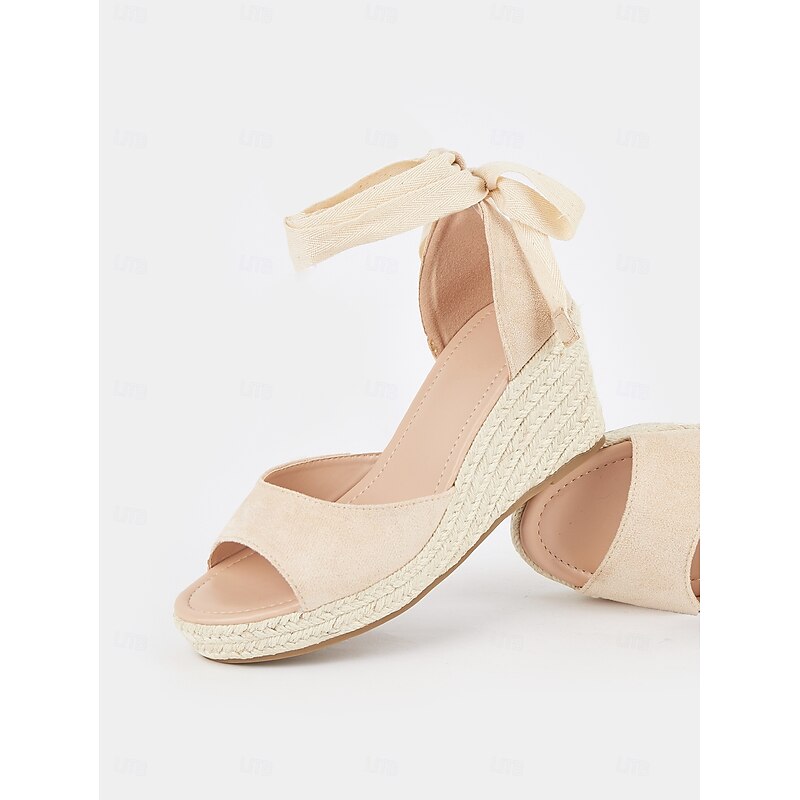 HOT ! Women's Beige Espadrille Wedge Sandals with Ankle Wrap, Open-Toe Summer Shoes for Beach, Casual, and Vacation Wear