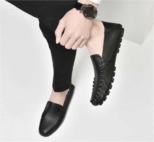 HOT ! Men's Loafers Shoes Genuine Leather Rubber Sole Stitching Details Round Toe Simple Anti-Slip Comfortable Flexible Party Shoes