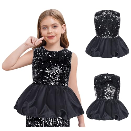 Kids Girls Sequins Ruffled Sleeves Tee Shirt Peplum Crop Tops for Wedding Festival Party 6