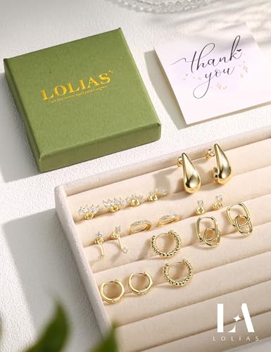 More information about LOLIAS Hypoallergenic Gold Hoop Earring Stacks for Women - 14K Gold Plated Huggie Stud Hoop Earrings Small Stainless Steel Cartilage Earring Sets for Multiple Piercing Lightweight 9Pairs