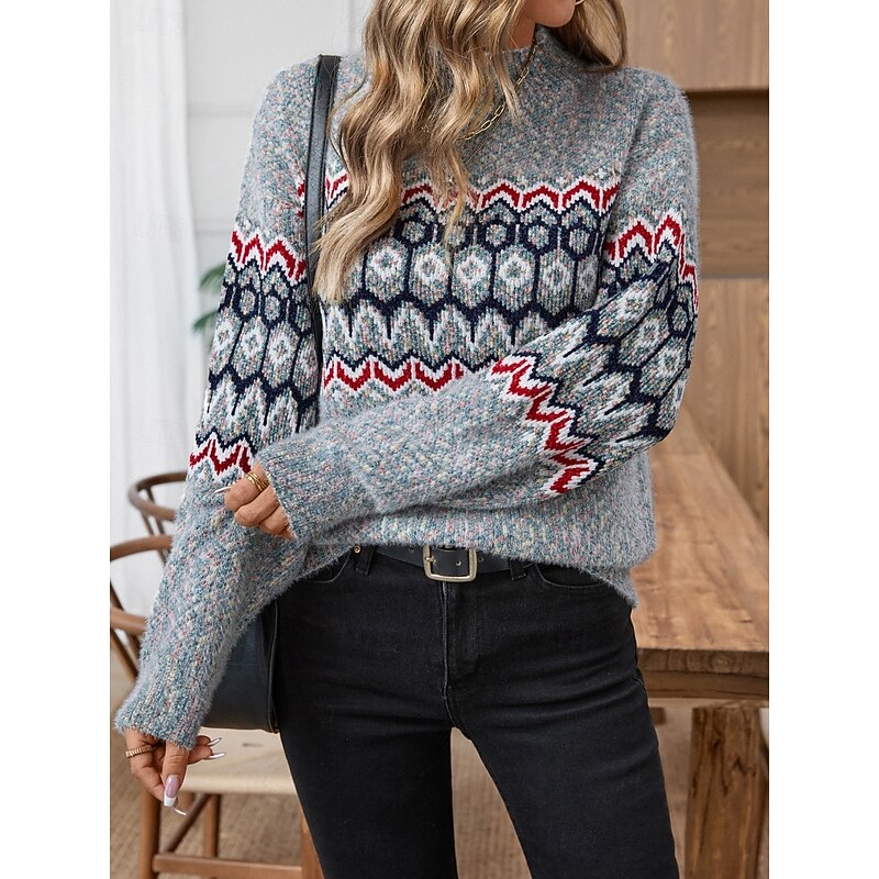 More information about Women's Sweater Casual Soft Geometric Ribbed Crew Neck Knitted Long Sleeve Regular Tops Knit Outdoor Daily Weekend Gray Fall Winter