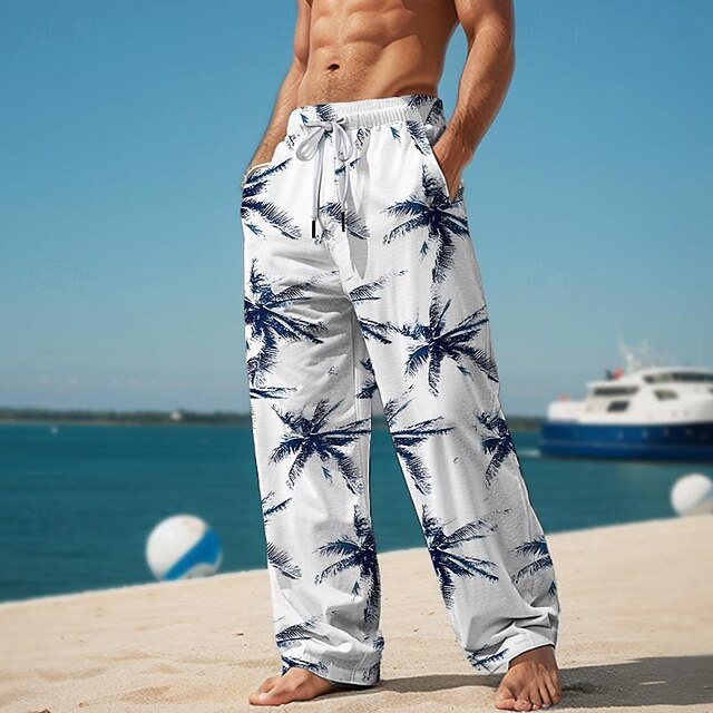 Palm Tree Vacation 3D Print Hawaiian Men's Side Pockets 3D Print Elastic Drawstring Design Pants Trousers Straight-Leg Trousers Outdoor Hawaiian Holiday Polyester Navy Blue Brown Green S M L Medium 3