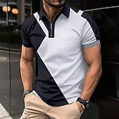 More information about Men's Line Zip Polo Short Sleeve Turndown Business Casual Daily Sports & Outdoor Athleisure Zipper Color Block Summer Grey Black Blue