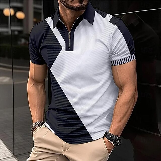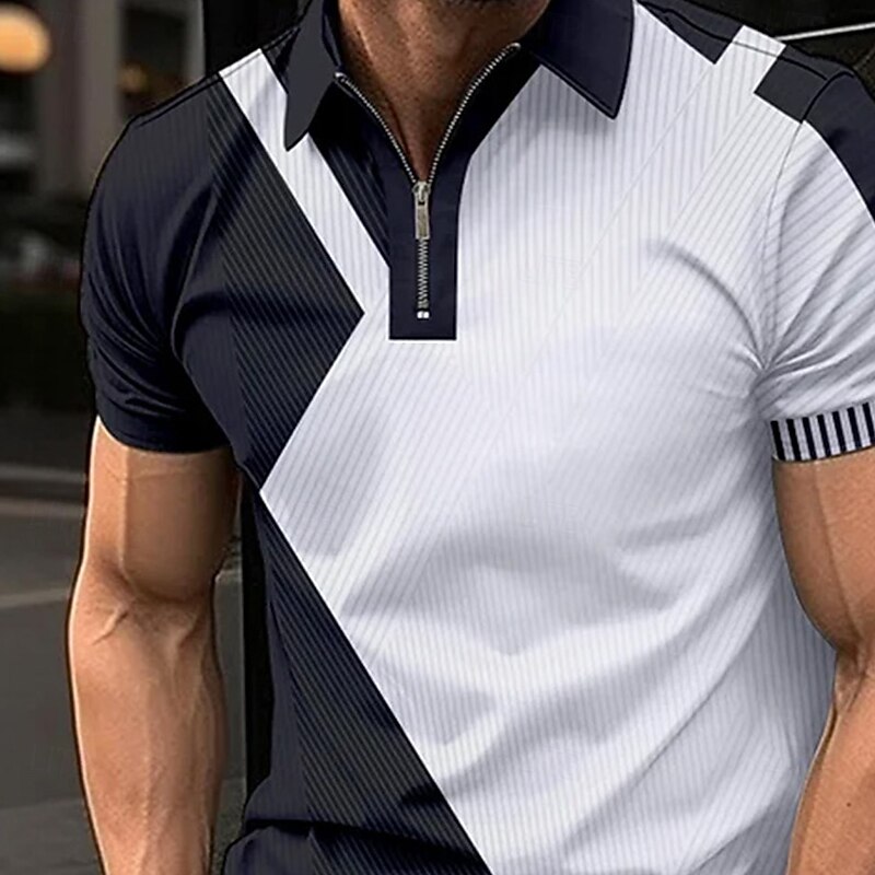 Men's Line Zip Polo Short Sleeve Turndown Business Casual Daily Sports & Outdoor Athleisure Zipper Color Block Summer Grey Black Blue 7