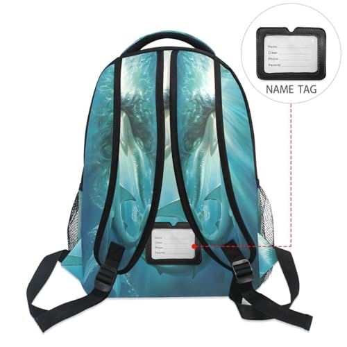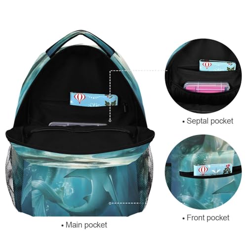 Shark Mermaid Underwater World Backpack for School Boys Girls Adults Kids Bookbag Laptop Bag 18L 7