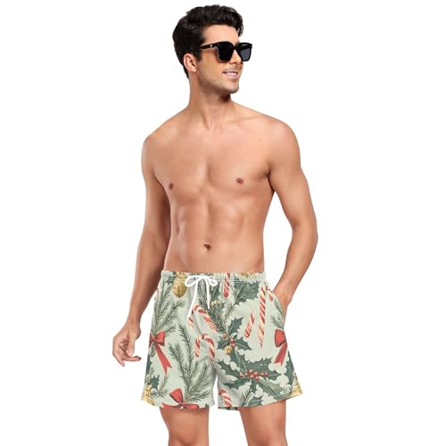 xigua Christmas Candy Mens Swim Trunks with Liner, 5 inch rapid Dry Mens Boardshorts for Beach