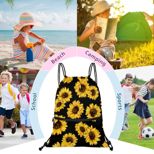 Floral Sunflower Pattern Drawstring Bag Drawstring Backpack Waterproof Smooth Sport Draw String Back Bag Gym Camping Beach Bag for Men Women
