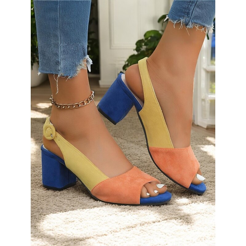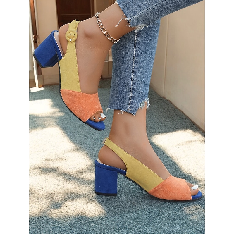HOT ! Women's Two-Tone Suede Peep Toe Block Heel Sandals – Stylish and Comfortable Open-Toe Shoes for Office, Parties, and Summer Outings