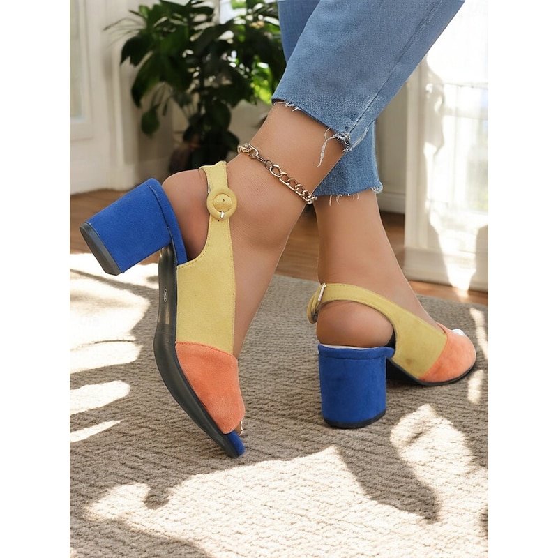 More information about Women's Two-Tone Suede Peep Toe Block Heel Sandals – Stylish and Comfortable Open-Toe Shoes for Office, Parties, and Summer Outings