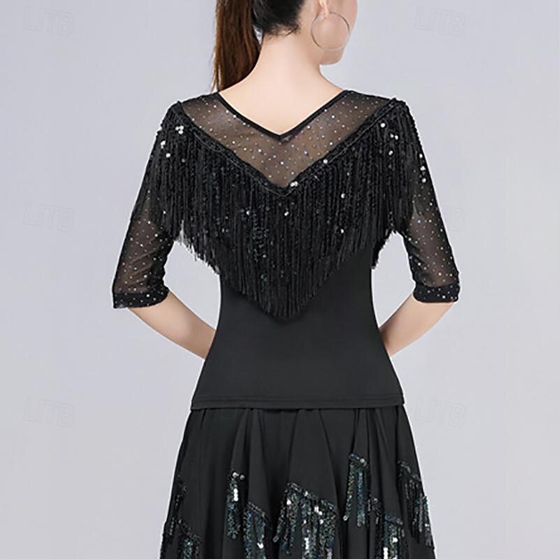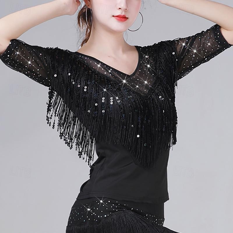 $42.99 - Latin Dance Ballroom Dance Top Tassel Pure Color Splicing Women's Performance Training Half Sleeve High Polyester 2025. Shop for cheap Tops & Sets online? Buy at lightinthebox.com on sale today!