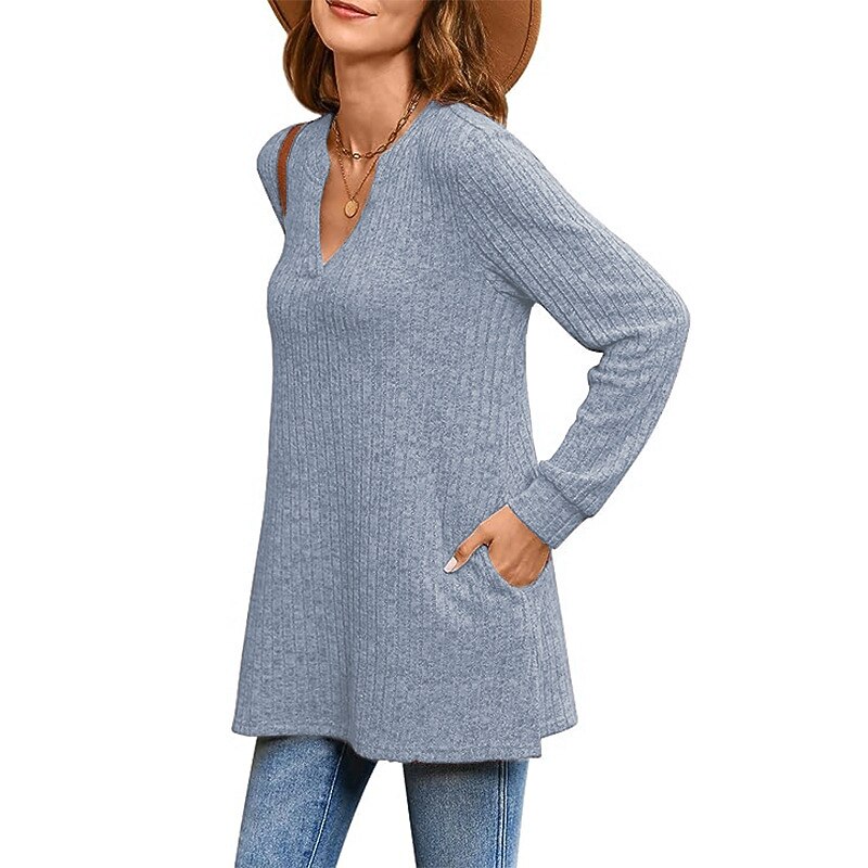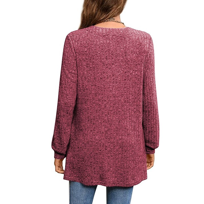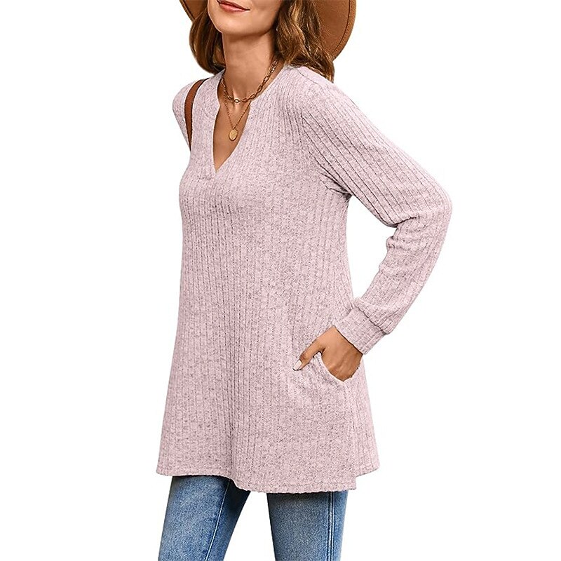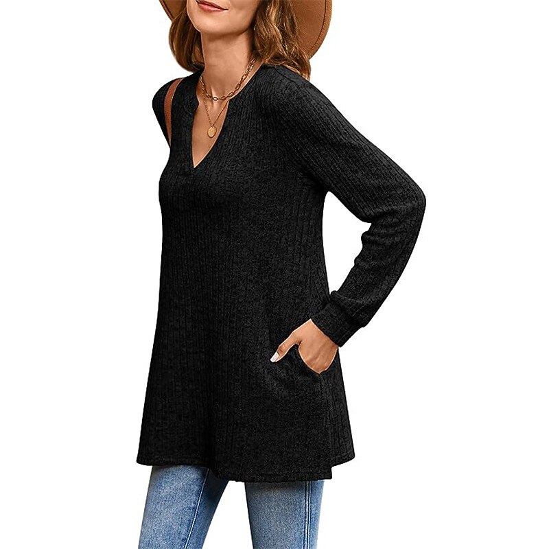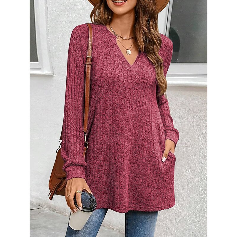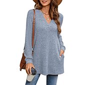 More information about Women's Shirt Blouse Fashion Pocket Long Sleeve Long Tops V Neck Casual Black Pink Army Green Red Dusty Blue Spring & Fall