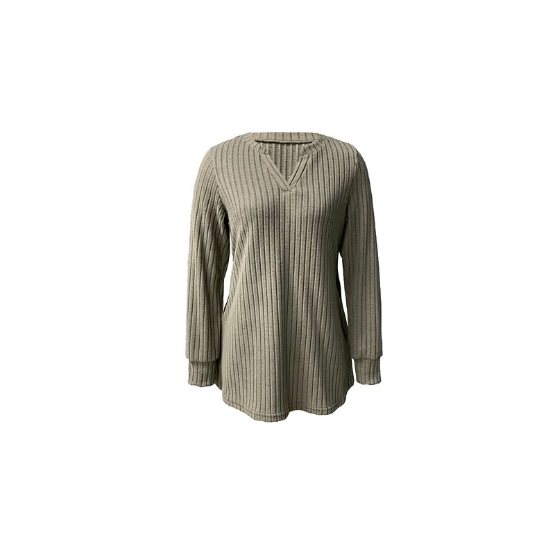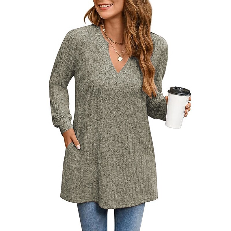 : Featuring a classic V-neckline and long sleeves, this blouse strikes a balance between elegance and casual style. The inclusion of side pockets adds both practicality and a charming detail, making it a versatile and functional addition to your wardrobe.