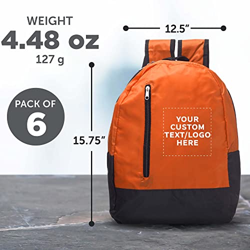 HOT ! DISCOUNT PROMOS 6 Quick Zip Backpacks Set - Customizable Text, Logo - Polyester, Unique features, Front Pocket, Vibrant - Orange