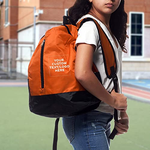 DISCOUNT PROMOS 6 Quick Zip Backpacks Set - Customizable Text, Logo - Polyester, Unique features, Front Pocket, Vibrant - Orange 7