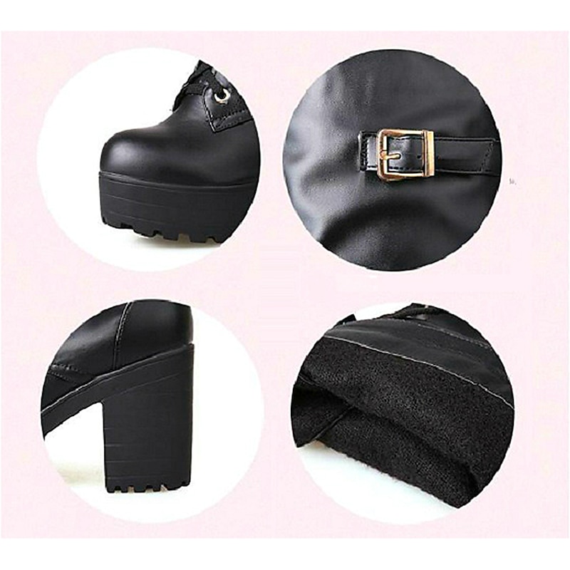 Women's Black Platform Lace-Up Knee-High Boots with Chunky Heels and Buckle Detail – Gothic or Punk Style for Fall and Winter 4