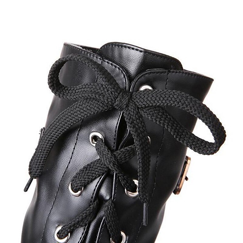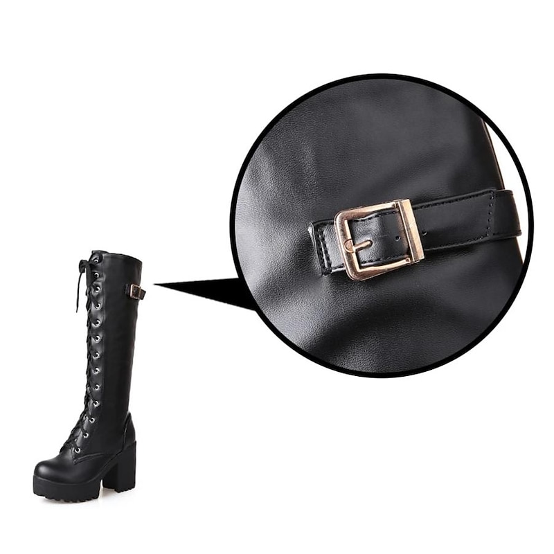 Women's Black Platform Lace-Up Knee-High Boots with Chunky Heels and Buckle Detail – Gothic or Punk Style for Fall and Winter 5