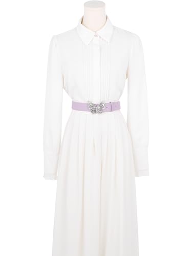 Fabric type: PU, metal, rhinestoneCare instructions: Dry Clean OnlyOrigin: ImportedMaterial: Good-quality faux leather, metal pin buckle, robust and fashionable. The PU leather belt with butterfly accessories is sleek but not exaggerated.Colors: Available in 5 colors including white, black, pink, purple, camel.Size: Total length: 106cm/41.73, Belt width: 3.2cm/1.26, Fit Waist Girth: 70cm/27.56'' to 100cm/39.37''.Use: Metal buckle with a butterfly buckle design adds a touch of elegance to the belt. Leather Belts for Women proclaim a timeless, understated style.Occasions: Perfect belt accessory to shape your waist for a blouse, dress, blazer, or sweater to make you look slim and classy. It's a nice gift for friends and family members.