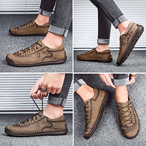 Mens Casual Shoes Summer Breathable Sneakers Loafers Walking Shoes Hand Made Lace-Up Leather Dress Flats Shoes for Driving Business Working Office 5