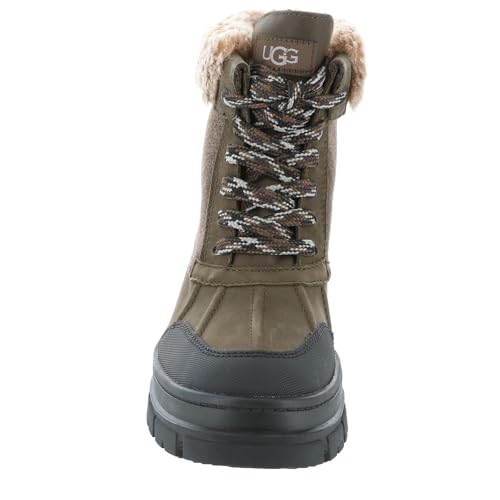 Origin: Made in the USA or ImportedFur description: Dyed Sheep Fur (Fur Origin: United States/United Kingdom/Spain/Ireland/Australia)Sole material: RubberShaft height: Calf HighWaterproof leather and textile upperWaterproof membrane bootie construction/seam-sealed10mm curly sheepskin shaft lining and textile liningSynthetic sockliner & Foam footbedDurable rubber outsole