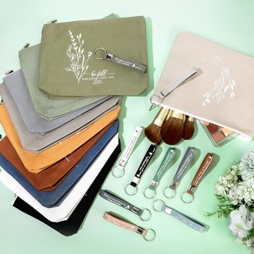 • Religious Quote Designs: our religious silicone keychain and canvas makeup bags are printed with 10 different inspirational bible verses on surfaces, which will build your faith and self confidence and positively impact people lives who are sad or in need, to inspire them to live a cheerful life