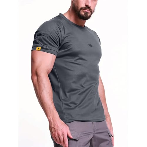 Fabric type: 100% PolyesterOrigin: ImportedNeck style: Crew NeckSleeve type: Short SleeveBreathable & Moisture-Wicking Fabric: Crafted from top-grade, breathable fabrics, these men's quick dry short sleeve shirts will keep you cool and dry during intense workouts or hot summer days. The moisture-wicking technology wicks sweat is quickly absorbed, away from the swelter and odors, keeping you fresh and pleasant.Stretch & Durability: These tshirts shirts for men feature reinforced stitching, anti-wrinkle, lightweight, soft, breathable, fade-resistant, stretch fabric allows for unrestricted movement, ensuring flexibility and long-lasting wear. Perfect for men who demand both performance and longevity.Functional Tactical Design: Ring buckle design under the placket is convenient for carrying sunglasses/microphones and a subtle sleeve pocket securely holds pens, small tools, or access cards. Ideal for outdoor workers, golfers, or casual outings.Versatile Style: Our men's work T shirts are designed to seamlessly transition from the gym to casual outings. Whether you're business,casual, date, work, tennis, golf, soccer, fishing, tactical training, travel, daily wear, fitnes, or enjoying a relaxed day, these active short shirts offer the perfect blend of comfort and style. Makes a great gift for yourself, father, husband, son, boyfriend, brother or friend.Easy Care & Quick-Dry: These men's fashion tactical shirts are machine and hand washable, don't exposure, quick-drying, saving you time and effort. No need to worry about wrinkles or shrinkage, they stay looking sharp with minimal maintenance.