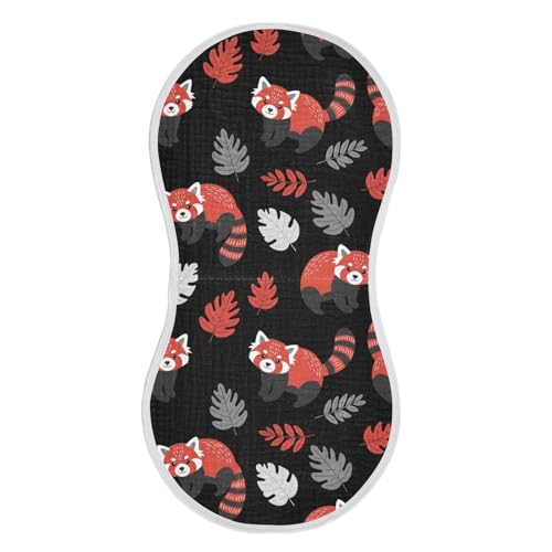J JOYSAY Red Panda Leaves Black Baby Burp Cloths for Boys Girls Large 22''x11'' Cotton 4 Layer Newborn Burping Cloth for Girl Baby one sizex4 5