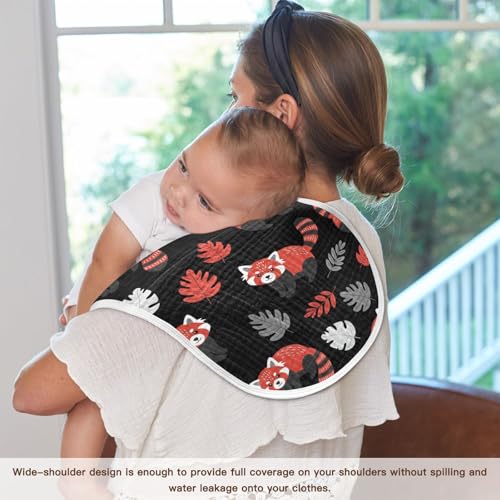 J JOYSAY Red Panda Leaves Black Baby Burp Cloths for Boys Girls Large 22''x11'' Cotton 4 Layer Newborn Burping Cloth for Girl Baby one sizex4 2