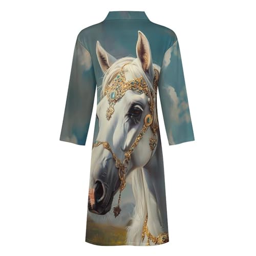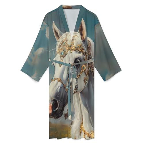 White Horse Wearing Gold Jewelry Funny Men's Robe Novelty Soft Lightweight Bathrobe Long-sleeve Spa Robes 7