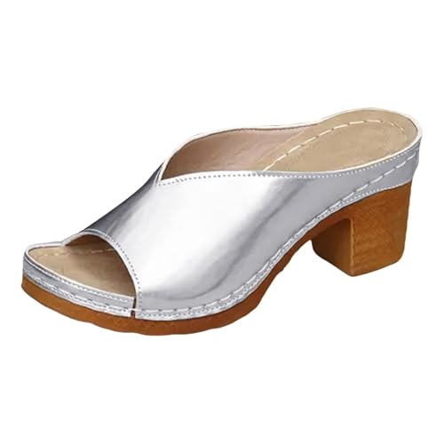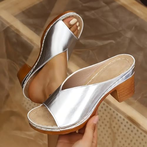 HOT ! Heeled Sandals for Women 2025,Chunky Heel Sandal Slip on Open Toe Square Toe Comfortable Mules for Long Walk Casual Shoes Dressy
