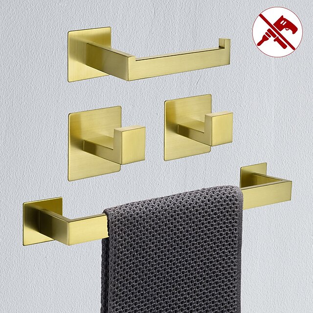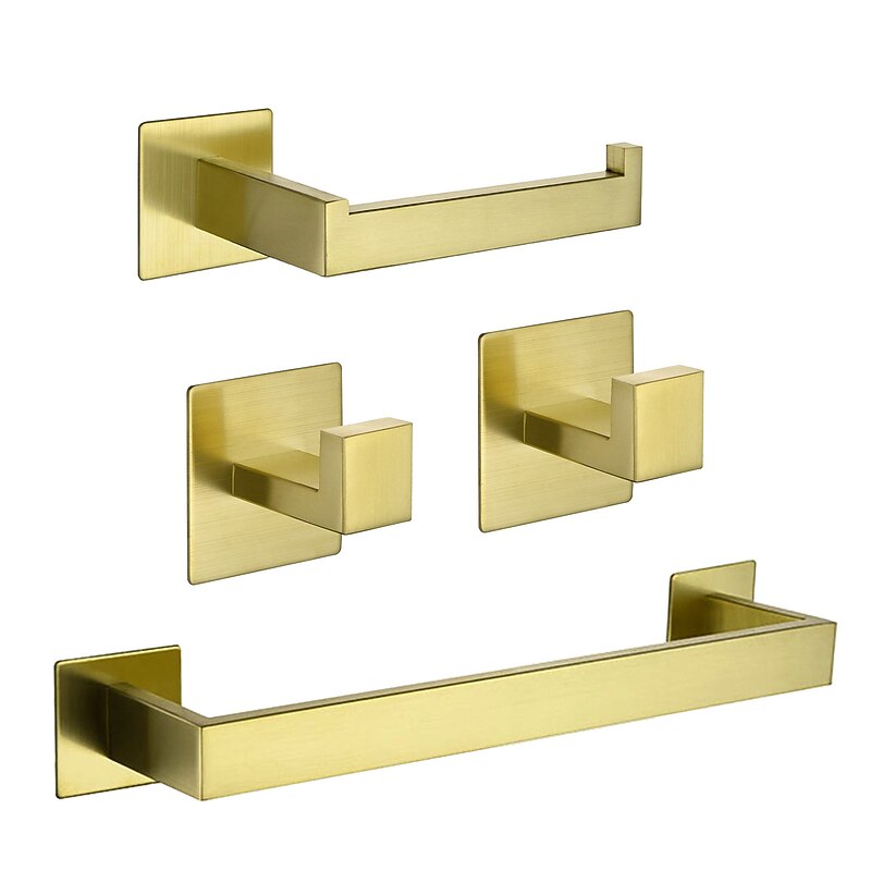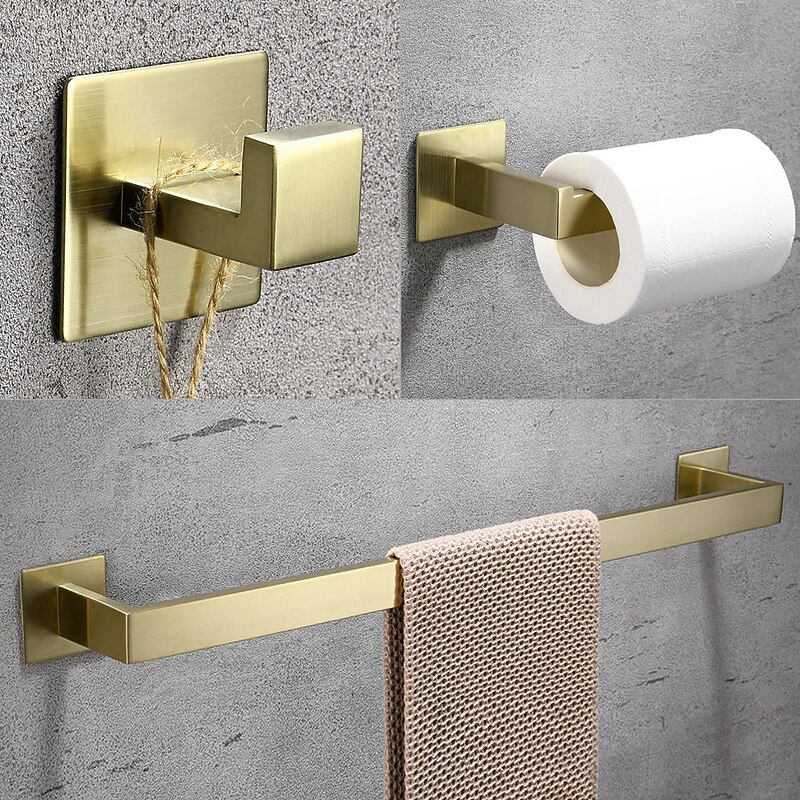 HOT ! Bathroom Hardware Accessory Set,Robe Hook, Self-Adhesive Brushed Golden Stainless Steel Towel Bar, Towel Holder, Toilet Paper Holde