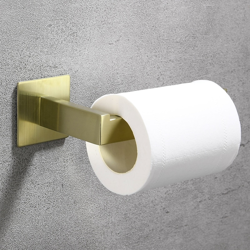 Bathroom Hardware Accessory Set,Robe Hook, Self-Adhesive Brushed Golden Stainless Steel Towel Bar, Towel Holder, Toilet Paper Holde 1