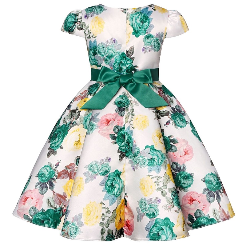Kids Girls' Dress Party Dress Flower Short Sleeve Performance Christening dress Tie Knot Princess Polyester Midi Party Dress Summer Spring 3-10 Years claret Multicolor Color blue 17