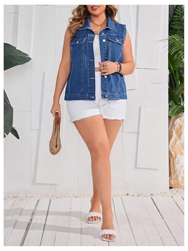 OYOANGLE Women's Plus Size Sleeveless Denim Jacket Vintage Button Down Jean Vest Coat 5