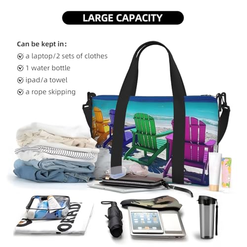 colorful beach chairs art print Travel Duffel Bag, Sports Tote Gym Bag, Swim Pool Bag Large Shoulder Tote Bag for Beach Weekender 7