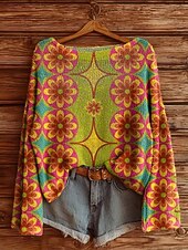 Highlights - Stay stylish all year round with this versatile top, perfect for Spring, Fall, and Winter. - Made from high-quality polyester fabric, this top ensures comfort and durability. - Long sleeves provide extra coverage and warmth for Women. - The stylish design features a trendy floral and geometric print. - Perfect for daily wear, the regular fit and crew neck make it easy to dress up or down. - Elevate your look with this chic and on-trend top.