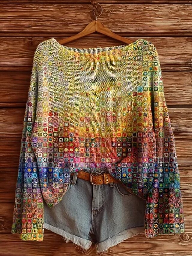 More information about Women's Sweater Casual Soft Floral Geometric Stylish Modern Long Sleeve Crew Neck Regular Tops Daily Holiday Print Yellow Orange Green Rainbow Spring Fall Winter