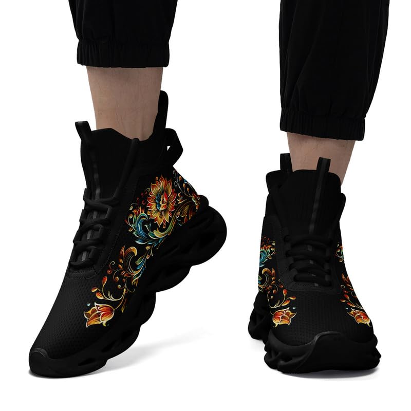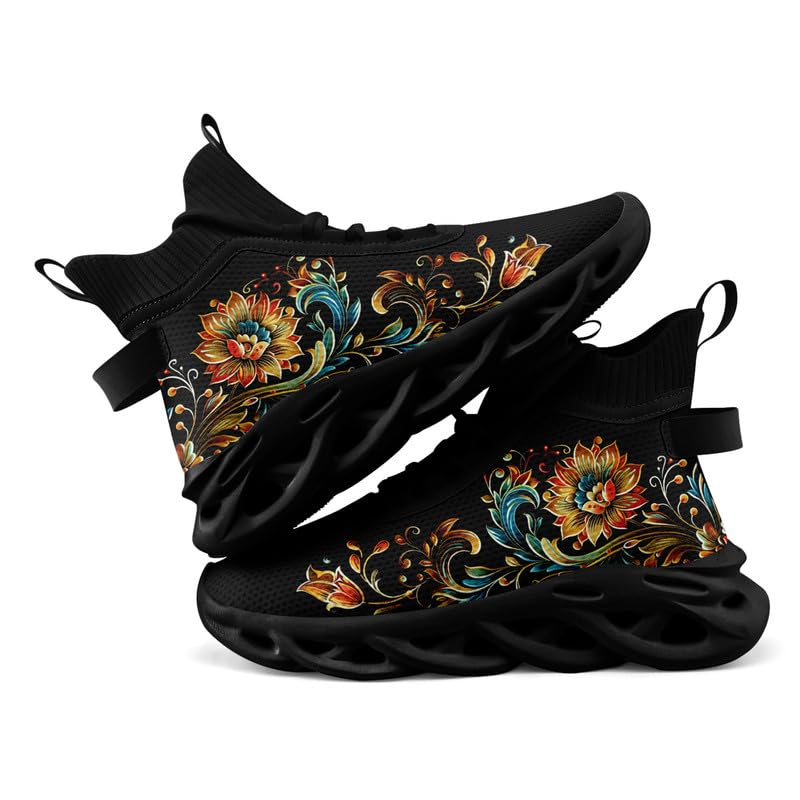 • Style and Versatility:The flexible trainers are designed with fashionable floral,wave,tree,and fireworks patterns,the tennis shoes are available in various colors,with white/black outsole,the road running footwear are designed to complement any clothing,dress,trousers,jeans.Whether you're heading out for a casual day or need something more stylish, these shoes have got you covered.Suitable for daily wear,do sports,go shopping,party,or play basketball/football.