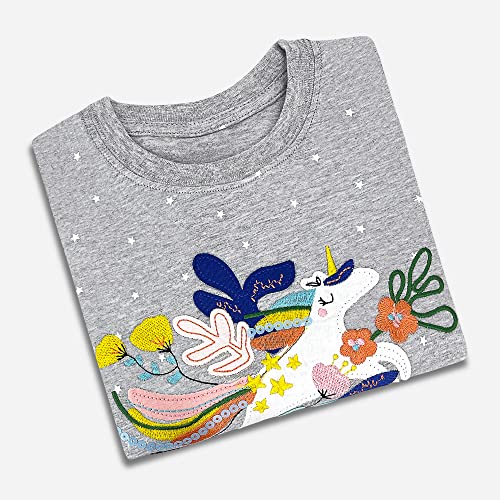 Toddler Girls Short Sleeve Shirts Unicorn Graphic Cotton Shirt Tee Summer T-Shirts for Girls 2-7 Years(Gray Uni,4T)