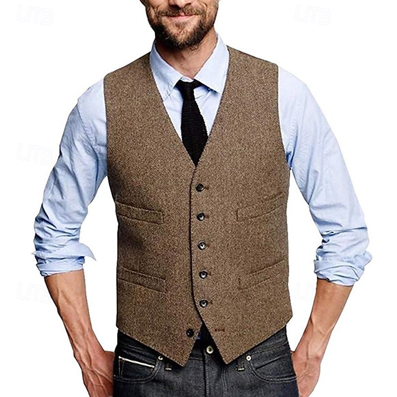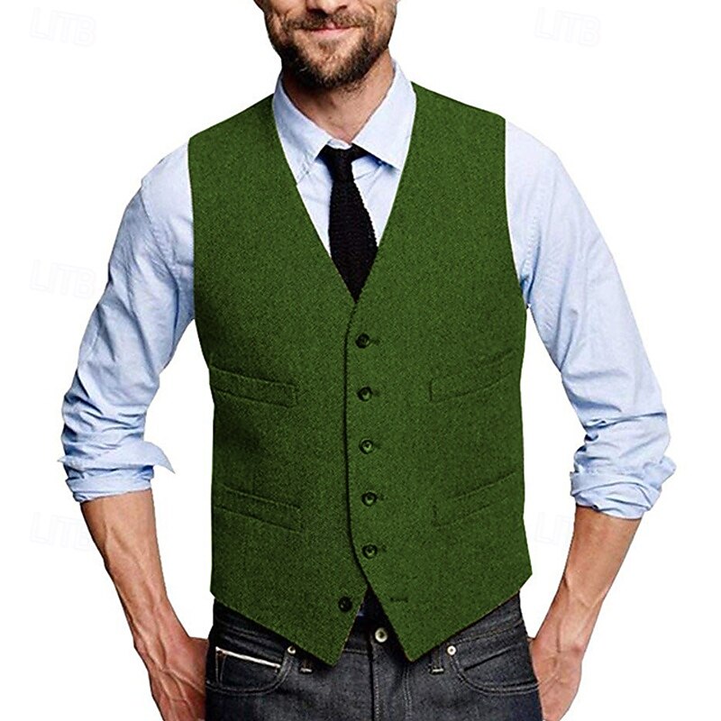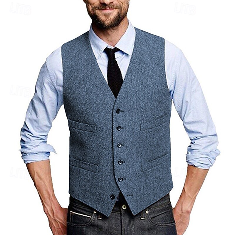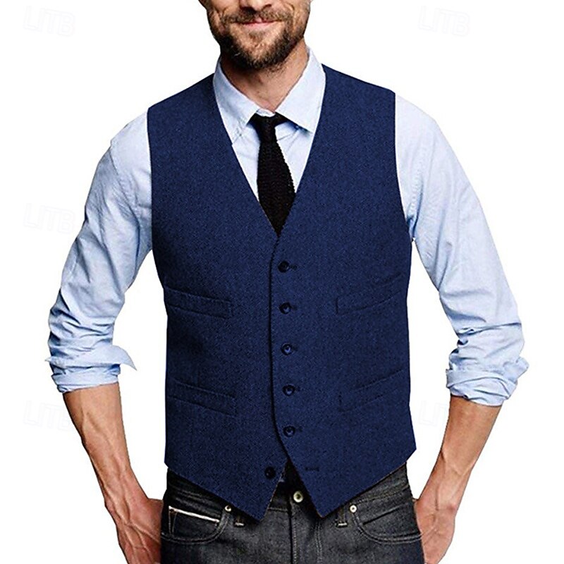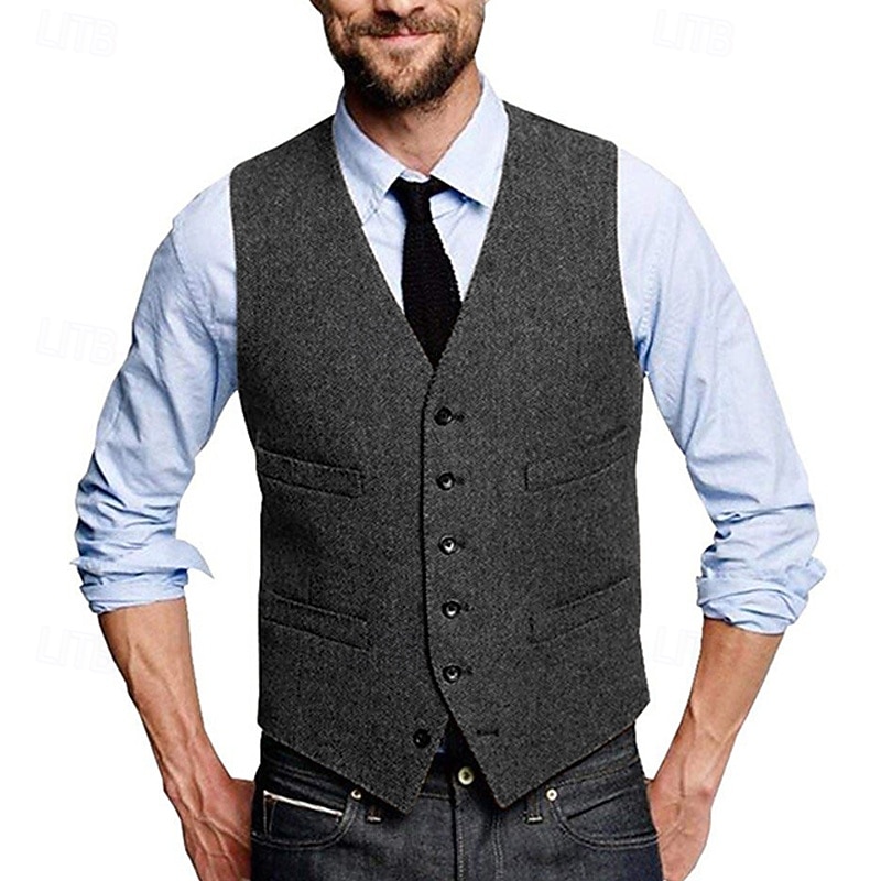 More information about Men's Vest Waistcoat Gilet Vacation Daily Wedding Party Date Fashion Casual Spring Fall Buttons Pocket Polyester Comfortable Plain Single Breasted One-button V Neck Regular Fit Silver Black Red
