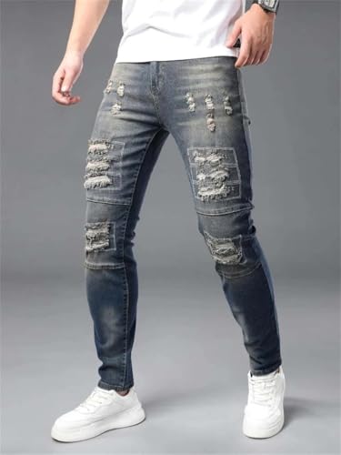 Men's Slim Washed Ripped Jeans Casual Distressed Stretch Hip Hop Skinny Denim Pants