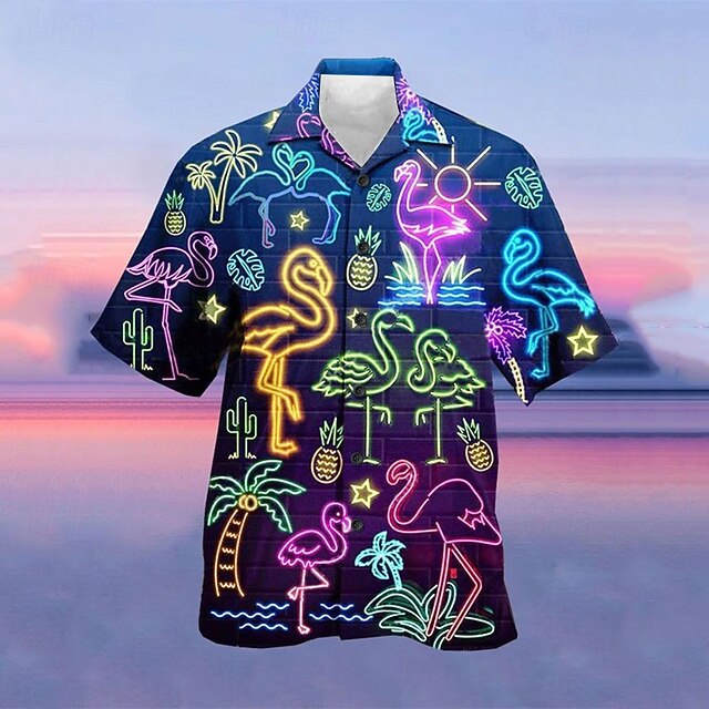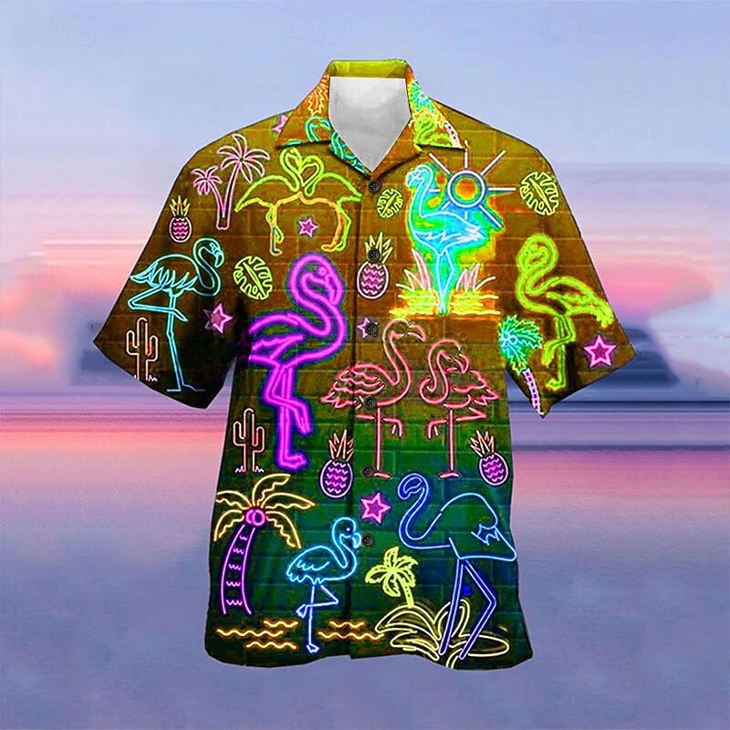 More information about Men's Fluorescent Shirt Summer Hawaiian Shirt Camp Collar Shirt Short Sleeve Shirt Turndown Street Casual 3D Print Yellow Red Light Purple Purple Green 3D Clothing Apparel Fashion Hawaiian Designer