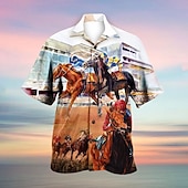 More information about Kentucky Derby Men's Horse Racing Shirt Cuban Collar Shirt Short Sleeve Vintage Retro Vacation Holiday Festival Summer Spring Camp Collar Shirt 3D Print Funny Kentucky Derby Shirts White
