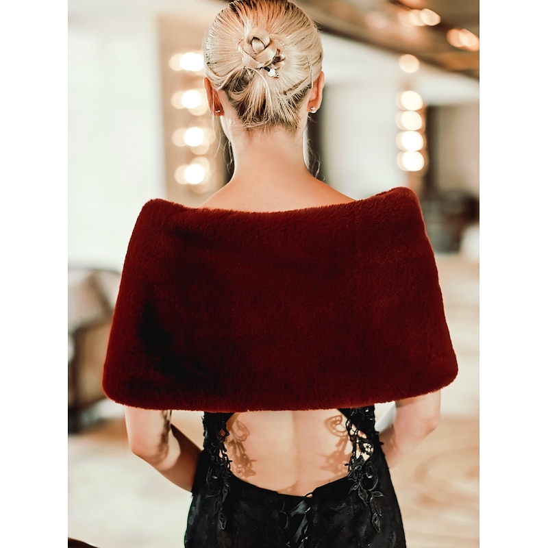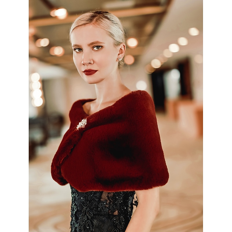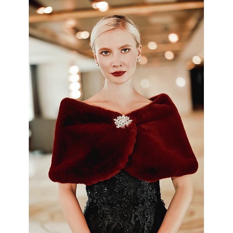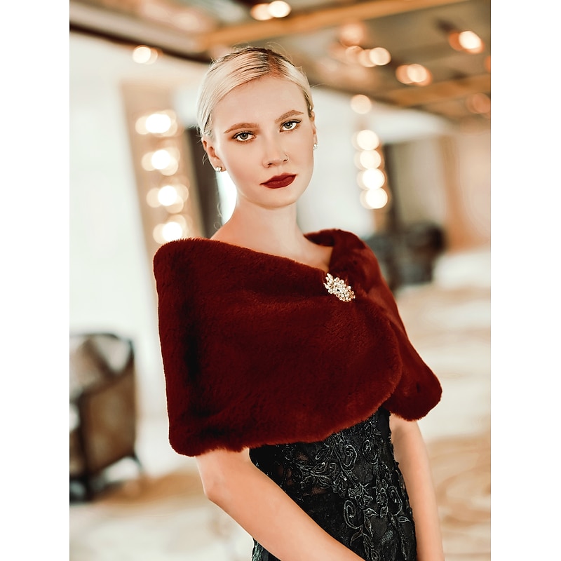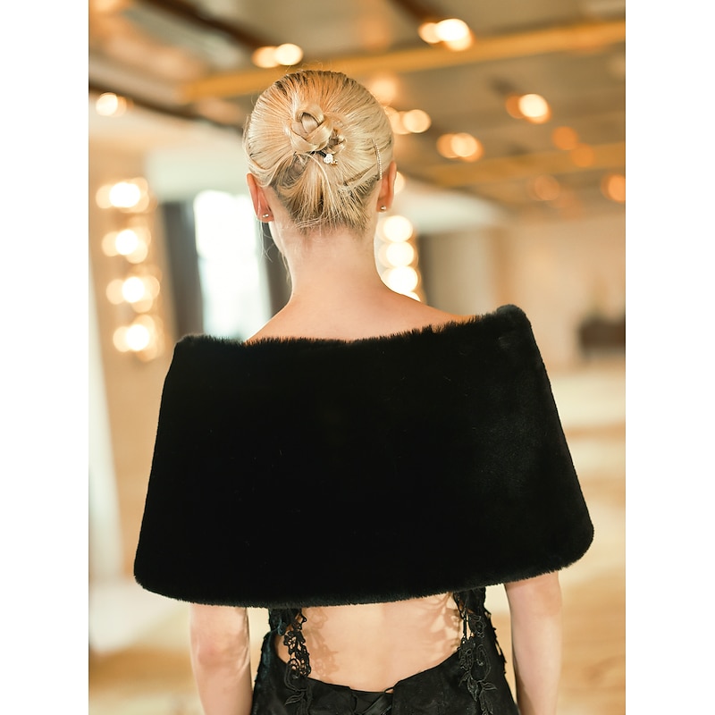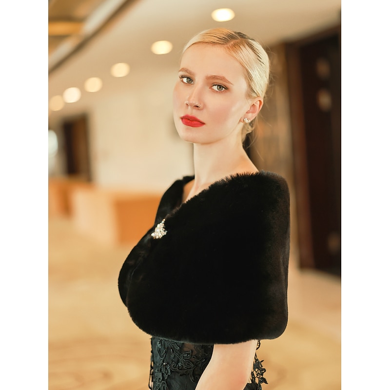 Faux Fur Wraps Shawls Women's Wrap Pure Elegant Sleeveless Terylene Wedding Wraps With Feathers / Fur For Wedding Fall & Winter