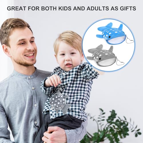 Cute Whale Shark Coin Purse, 2 PCS Small Kawaii Wallet with Zipper Keychain, Plush Cartoon Animal Embroidered Coin Pouch Mini Earphone Bag Funny Novelty Coin Purse for Women (Blue, Gray) 6