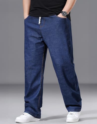 Men's Plus Size Straight Leg Jeans with Elastic Waist & Drawstring (XL-8XL) - Casual Loose Stretch Denim Pants