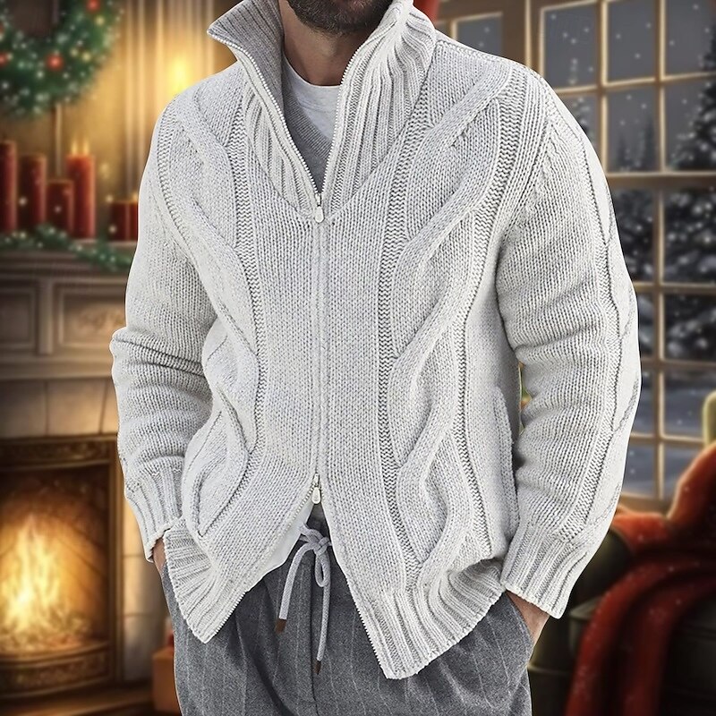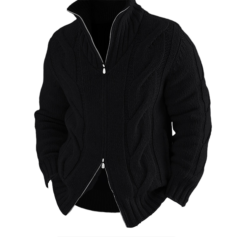 HOT ! Men's Cardigan Sweater Zip Sweater Chunky Cardigan Cable Regular Knitted Plain Stand Collar Warm Ups Modern Contemporary Casual Daily Wear Clothing Apparel Fall Winter Black White M L XL
